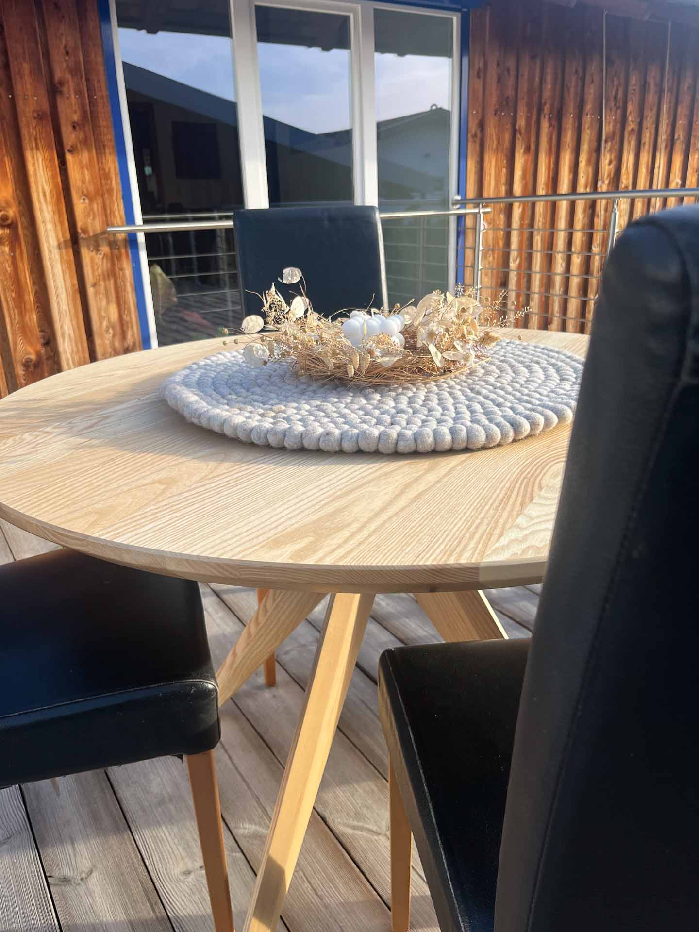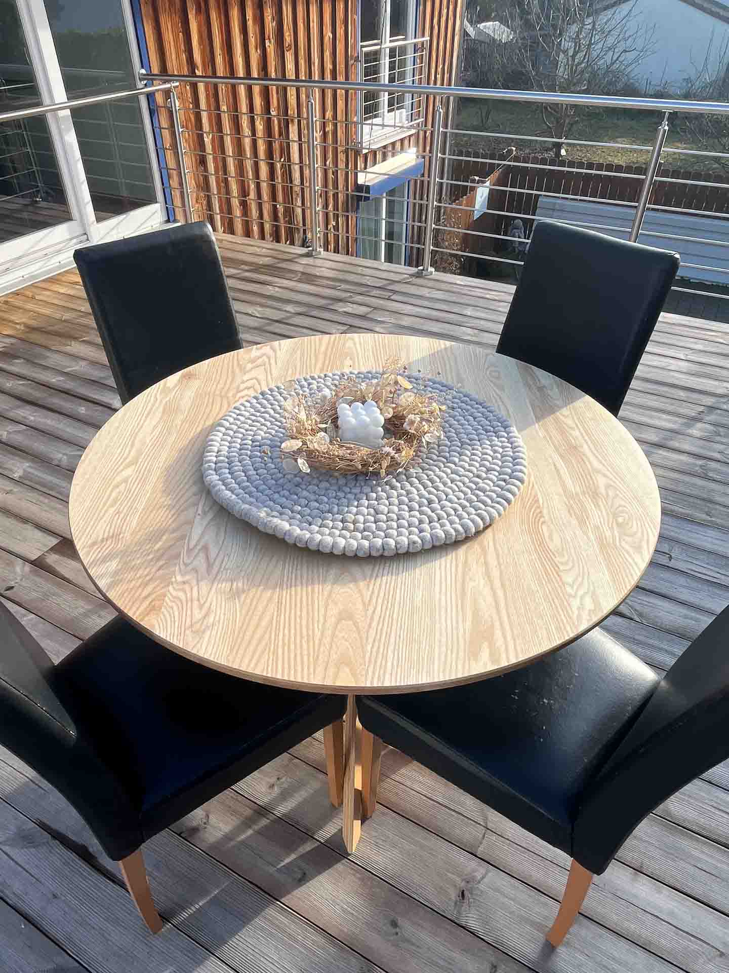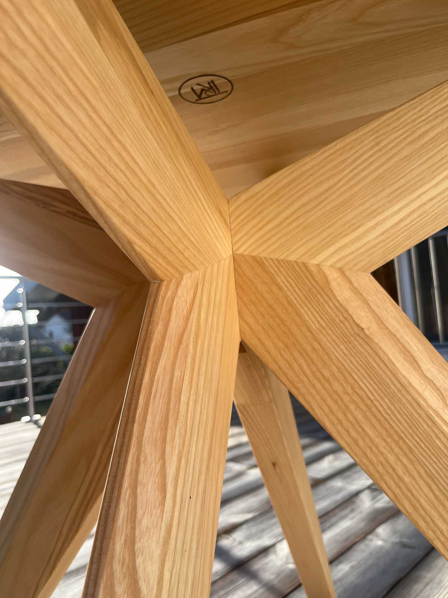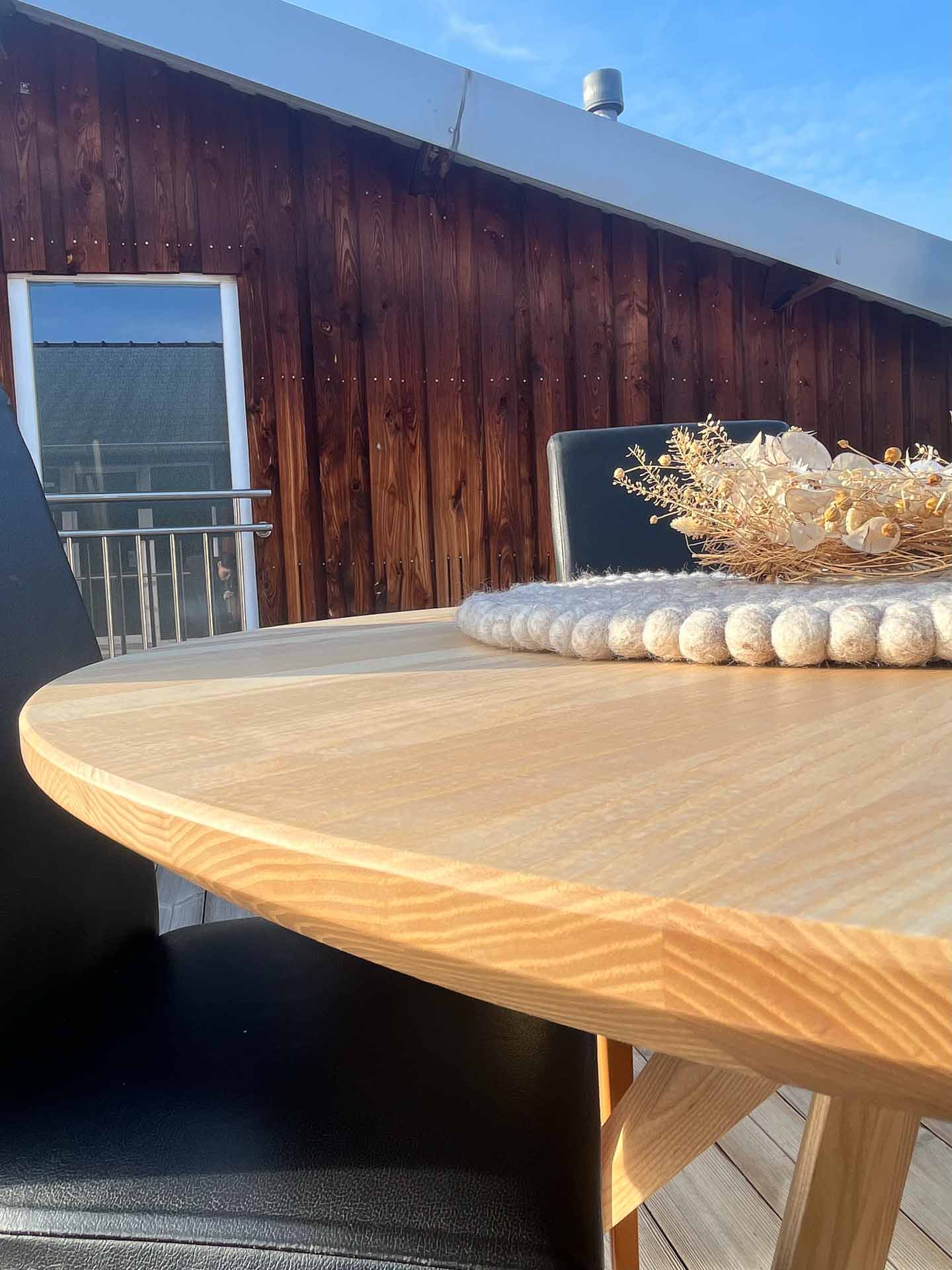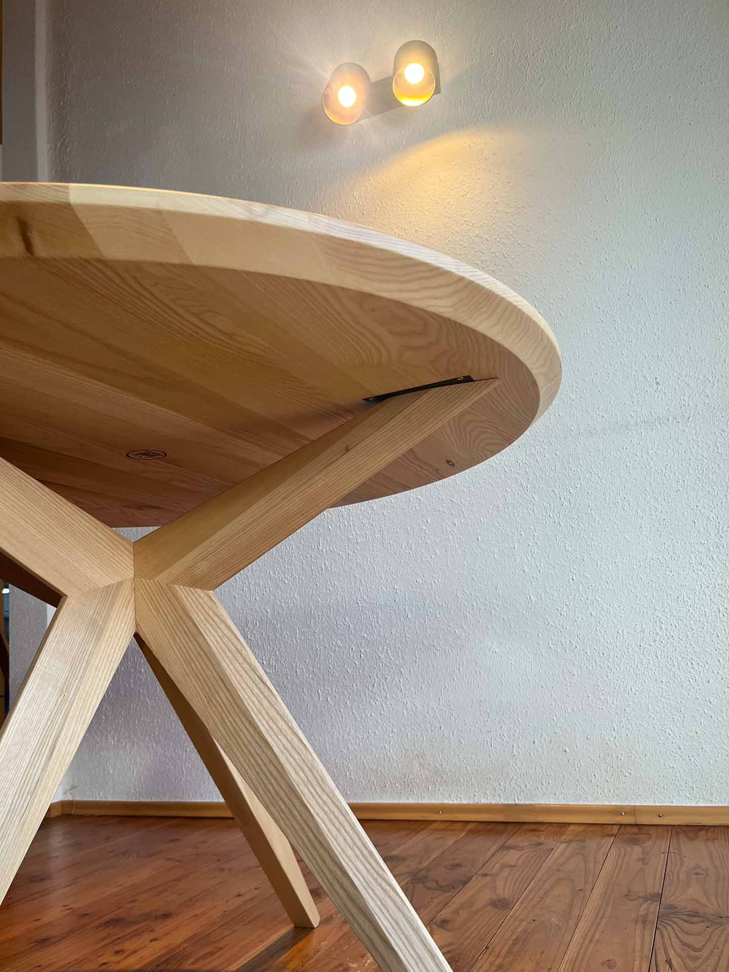Runder Esstisch T2, maßgefertigt aus Eiche für den täglichen Gebrauch und eine klare, zeitlose Gestaltung.